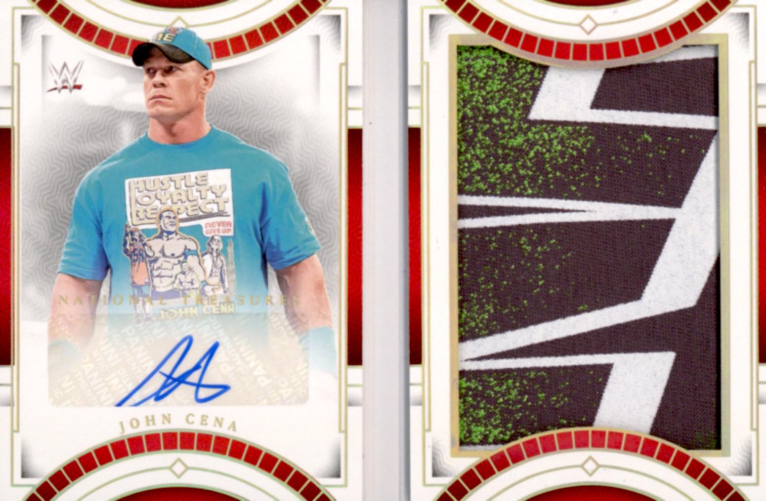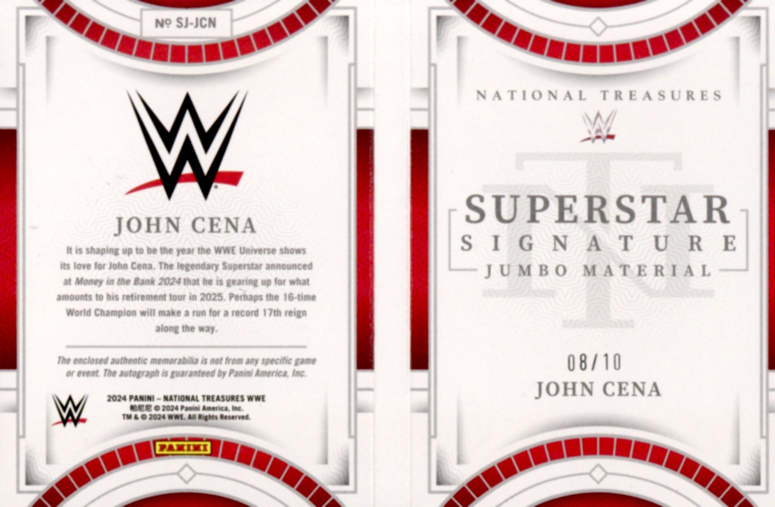 - 2024 WWE Panini National Treasures John Cena Jumbo Patch Autographed Booklet #/10