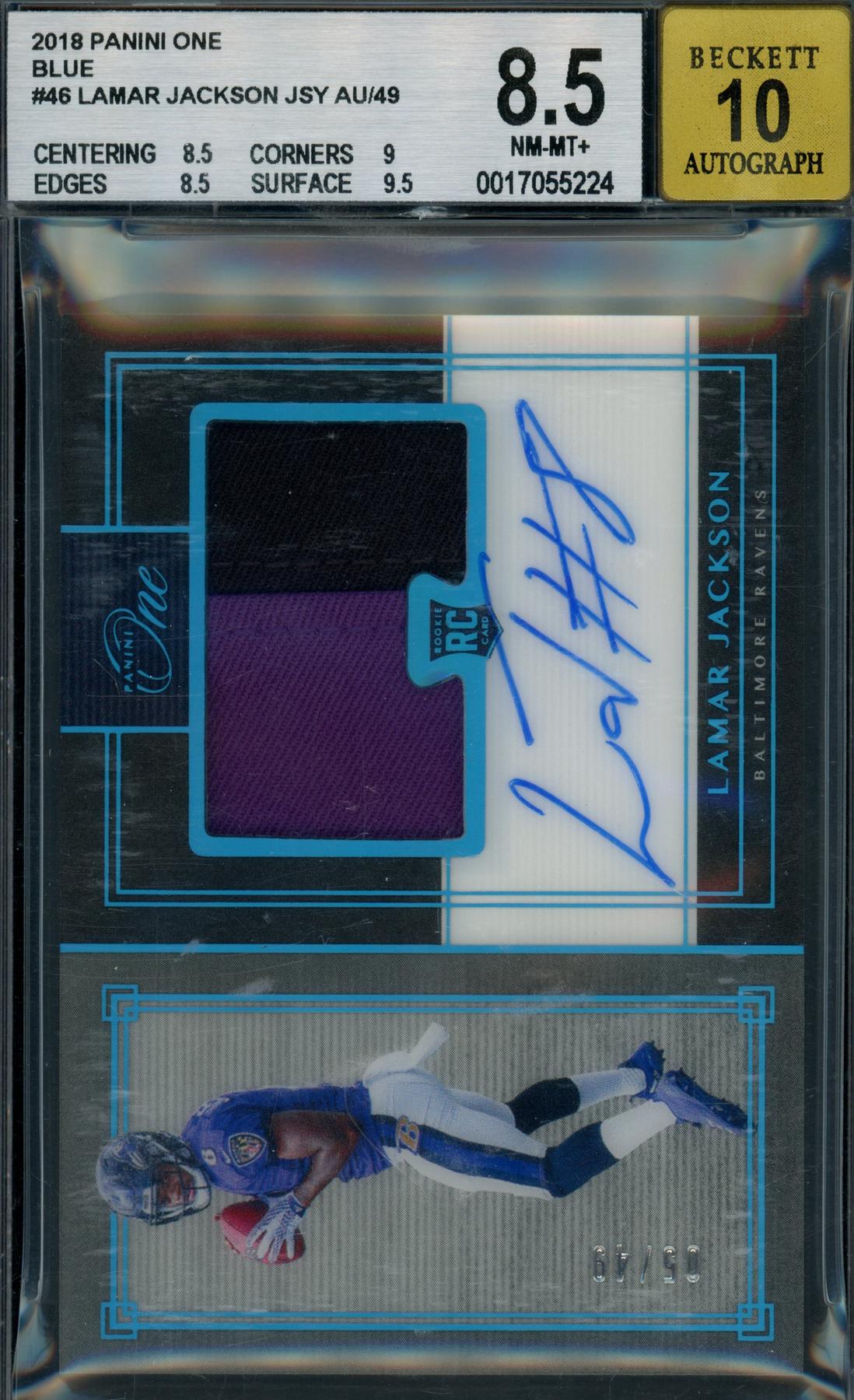 -2018 Panini One Lamar Jackson Patch Auto #46 /49 BGS 8.5