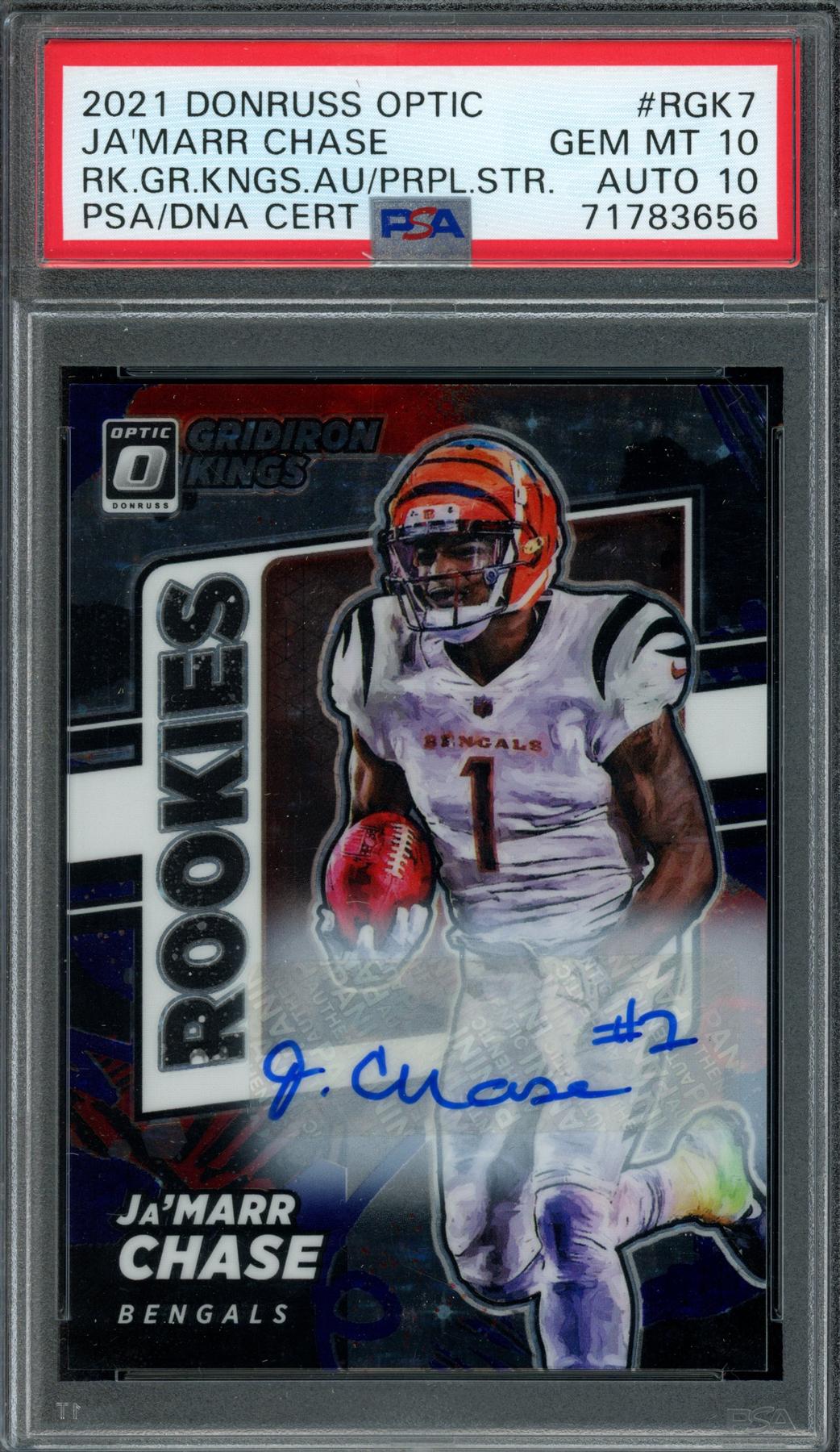 -2021 Panini Donruss Optic Ja'Marr Chase Rookie Kings Auto Card PSA 10