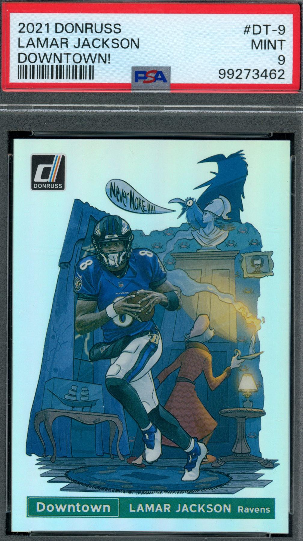 -2021 Donruss Lamar Jackson Downtown # DT-9 PSA 9