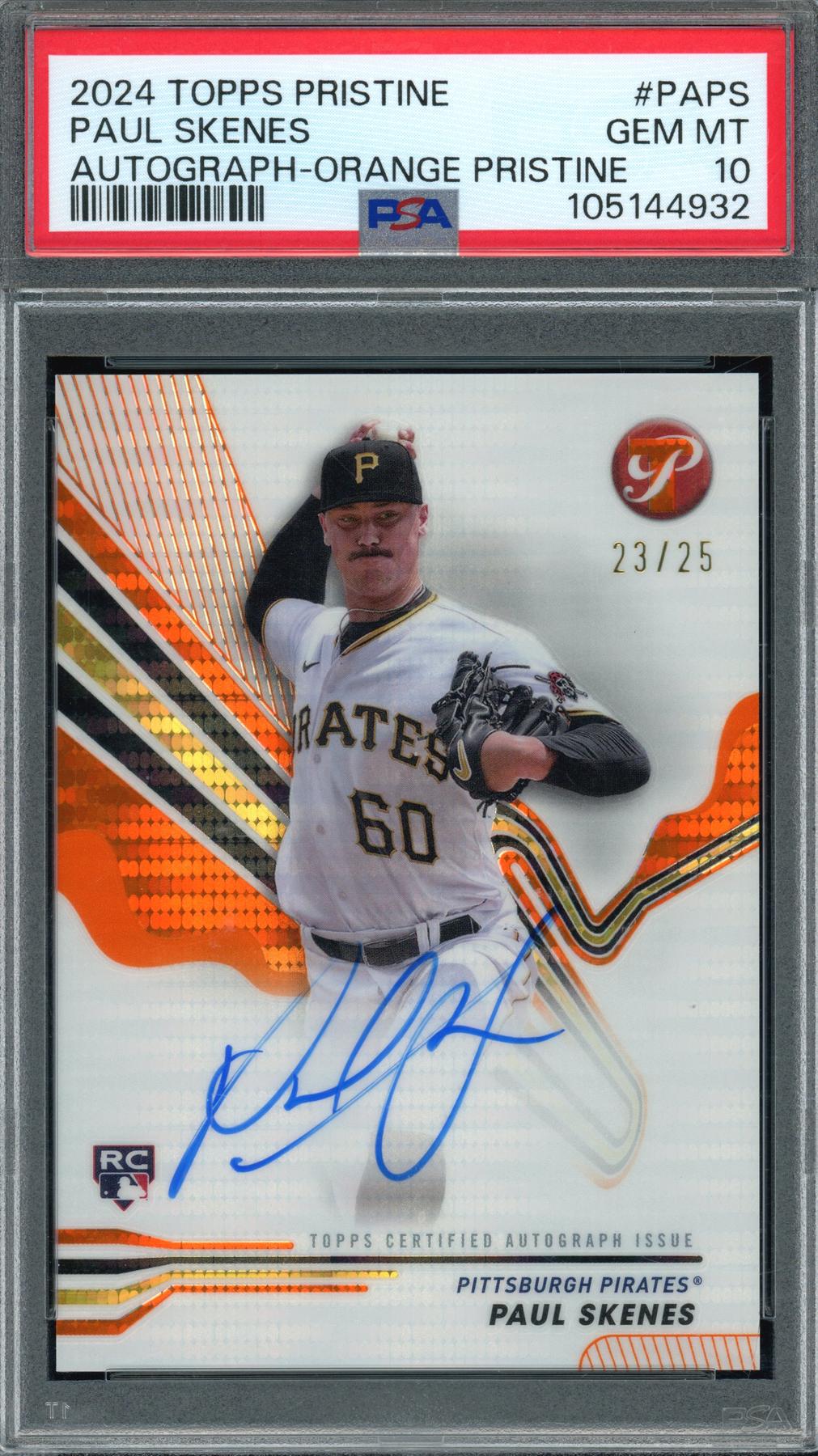 - 2024 Topps Pristine Paul Skenes Orange Refractor Rookie Auto /25 PSA 10